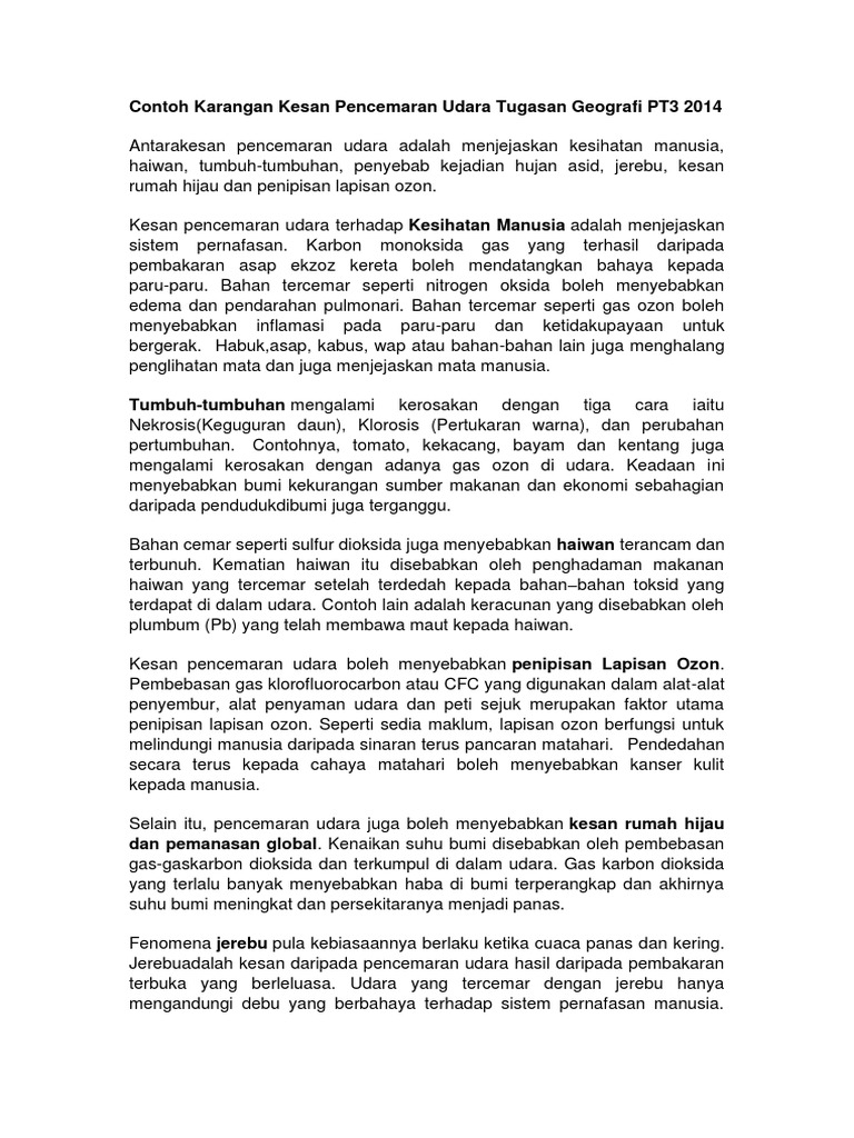 Contoh Karangan Kesan Pencemaran Udara Tugasan Geo Ting 3 Pdf