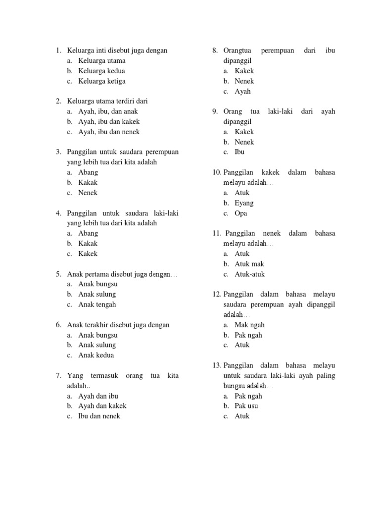 9192017 Berhubung Malaysia saudara tetangga kita bahasanya pun banyak yang mirip. Di berbagai daerah di Indonesia terdapat banyak panggilan kepada kakak laki. Setiap makhluk yang berkembang melalui seksual dan bukan chimera genetik memiliki maksima dua gene nenek empat genetik moyang lapan genetik piut perempuan dsb.