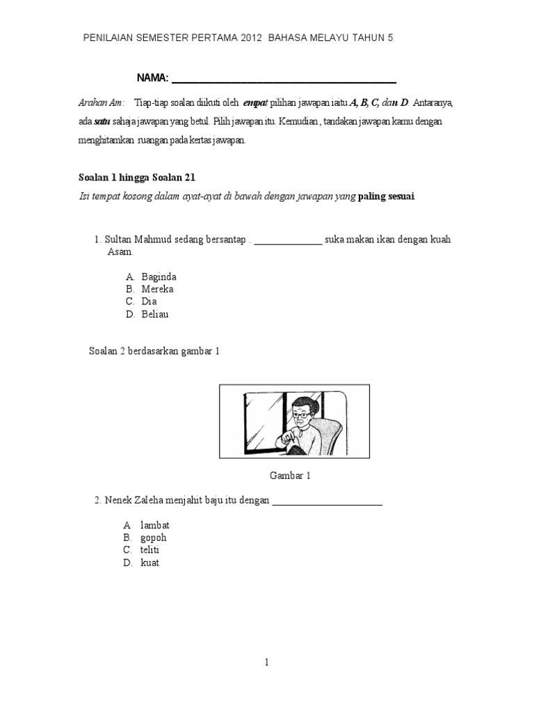 Soalan 1 berdasarkan Gambar 1. Soalan Bahasa Melayu Tahun 5 Format Baru 2019 2021-10-26T013400-0700 Rating. B menganyam D menyulam.