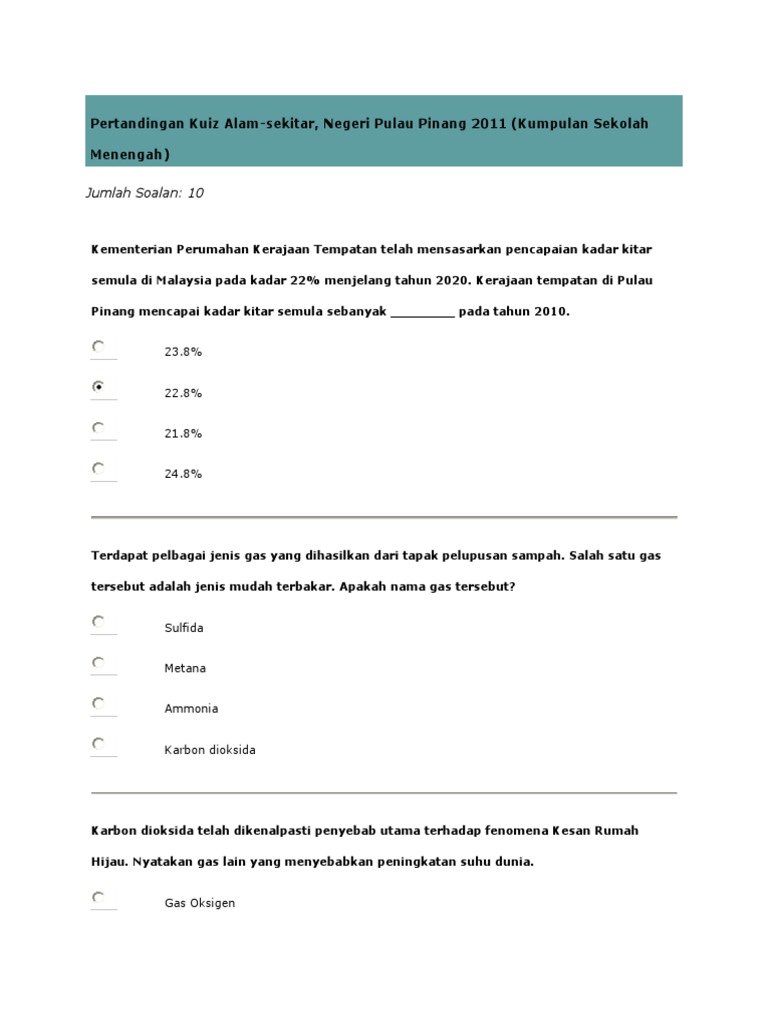 Contoh Soalan Kuiz Alam Sekitar Sekolah Menengah Terengganu Z