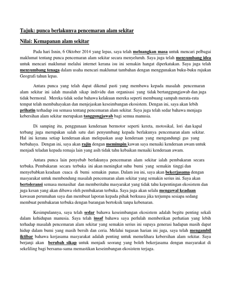 For more information and source see on this link. Punca-Punca Pencemaran Alam Sekitar. Contoh Karangan Punca Pencemaran Alam Sekitar Teratak 10.