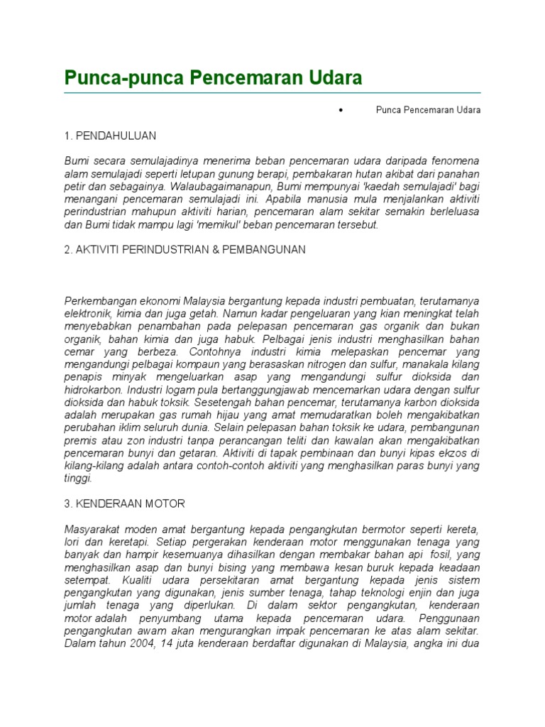 Antara punca-punca yang boleh kita huraikan sebagai penyebab berlakunya pencemaran alam sekitar ialah pencemaran yang disebabkan oleh faktor semulajadiPencemaran ini terjadi tanpa diduga oleh masyarakatIni kerana pencemaran ini berpunca daripada kejadian seperti gunung berapiribut taufangempa bumi dan sebagainyaPencemaran ini boleh mendatangkan kesan yang. Here are some resumes of keywords to help you find your search the. Pencemaran udara memberi kesan yang sangat buruk terhadap tumbuh-tumbuhan di dunia ini.