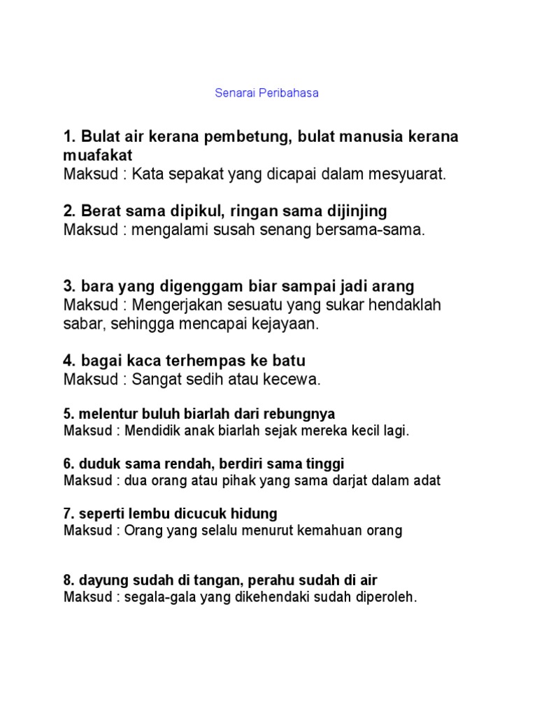 Bulat air kerana pembetung bulat kata kerana muafakat. Gar-gar kata helegar rusuk juga yang menahannya Maksud Orang yang mengalami sesuatu masalah kesukaran untuk mengetahui kesusahan sebenar yang dihadapi PERIBAHASA SAMA MAKSUD 1. Some of the common Malay idioms which you should have mastered include but not limited to bulat air kerana pembetung bulat manusia kerana muafakat. Manusia bersatu sebulat suara kerana bermuafakat.